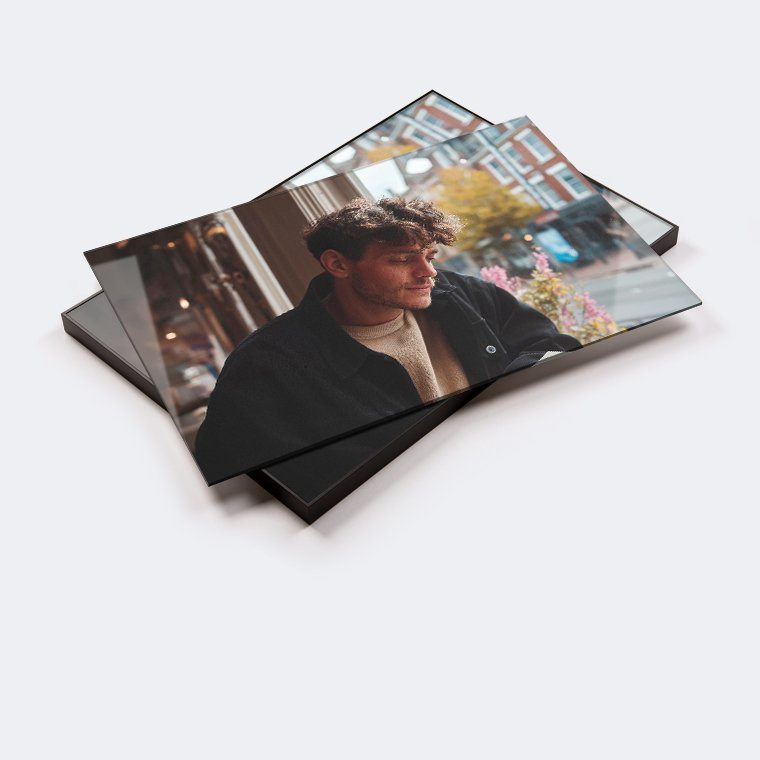 Impression sur plexiglas : rendu moderne, couleurs intenses et aspect haut de gamme. Votre visuel est appliqué derrière l’acrylique, créant un effet de profondeur fascinant – parfait pour l’architecture, les portraits ou l’art moderne.